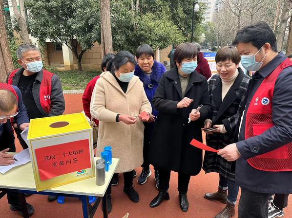 以党的二十大精神为主题,开展党的二十大知识有奖竞答,以答题形式开展理论宣讲,并为答题正确者发放纸巾、分类垃圾袋、肥皂等奖品。此项活动吸引了大批老年人、小朋友的积极参与,发放奖品200余份。大家兴致高昂,纷纷参与答题,以实际行动推动党的二十大精神在基层群众中生根落地。
