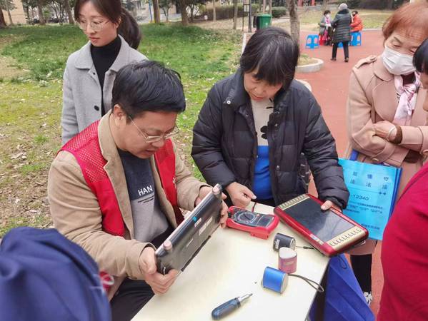 党员志愿者利用专业特长,免费为居民提供电饭煲、吹风机、电动玩具等小型家电维修服务。此项活动受到阿姨们的热烈欢迎,纷纷拿出了家里年久失修的“老古董”。在短短2小时的时间里,党员志愿者们就修好了电茶壶2只,音响1个,吹风机1个,插座1只。