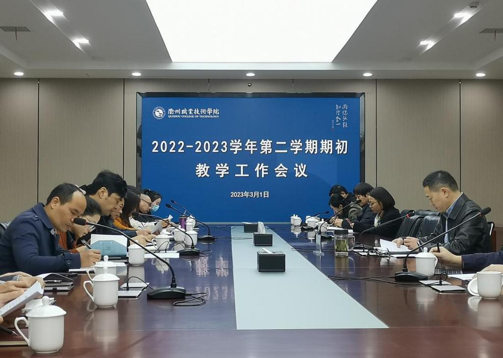 为了保证新学期全校工作正常开展,落实好2023年教育教学工作任务,我校于3月1日上午召开2022-2023学年第二学期期初教学工作会议。校党委委员、副校长姚水洪,教务处处长王建,各教学单位院长(主任),分管教学副院长(副主任)及教务处相关人员参加本次会议。