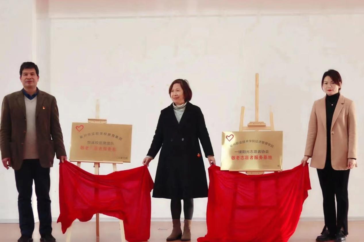首先,经济管理学院党总支副书记蒋雪芬与天颐养老院院长孔令玲为“一缕阳光志愿者协会敬老服务基地”揭牌,双方希望以此为契机,将“大手拉小手”敬老志愿服务活动做的更深、更远、更实,产生更大的社会效益,形成志愿服务品牌。