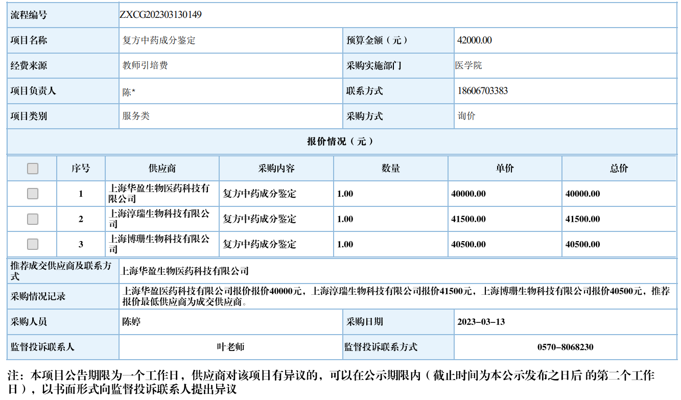 开元网页版复方中药成分鉴定自行采购信息公示