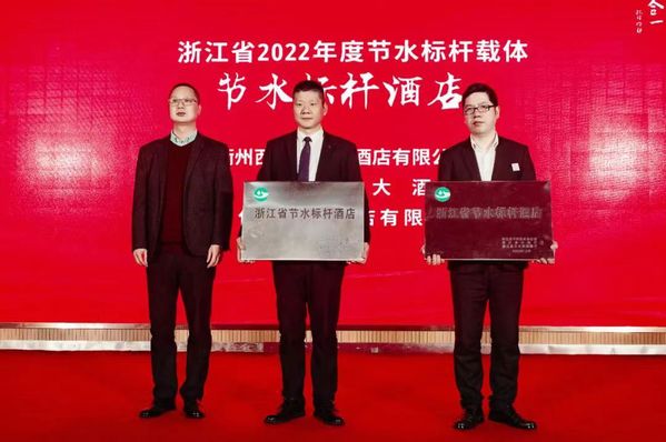 市文旅局市场管理处负责人郑永兴为节水标杆酒店代表授牌
