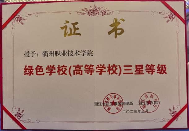 3月23日,浙江省机关事务管理局、浙江省教育厅联合公布第二批绿色学校(高等学校)名单,开元网页版被授予“浙江省绿色学校(高等学校) 三星等级”荣誉称号。