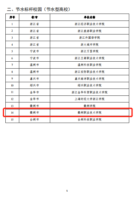 学校高度重视绿色学校建设工作,深入贯彻落实习近平生态文明思想、厚植绿色发展理念、积极引导师生养成低碳健康的学习生活,从精神文化、物质条件、行为管理、管理绩效等四个方面入手,全力推进“三融一赋”做法:将绿色低碳发展融入教育教学,引领绿色低碳发展;将绿色低碳发展融入日常生活,践行绿色低碳理念;将绿色低碳发展融入校园建设,适应绿色低碳社会;坚持数字赋能,全面提升能耗分析与管理。经过长期努力,学校各项能耗指标常年保持省内领先水平,节水节电及公共机构能源管理方面成效明显,先后于2016年荣获”节约型公共机构示范单位”、2018年荣获“衢州市节水型单位"、2022年荣获“浙江省节水标杆校园”等荣誉称号。