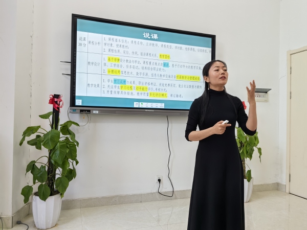 首先,青年教师代表进行了说课展示。教师们从说教材、学情分析、说教学目标、说教学内容与环节、说重点难点、说教学方法与手段、说教学效果、说创新与特色等几个方面进行说课。
