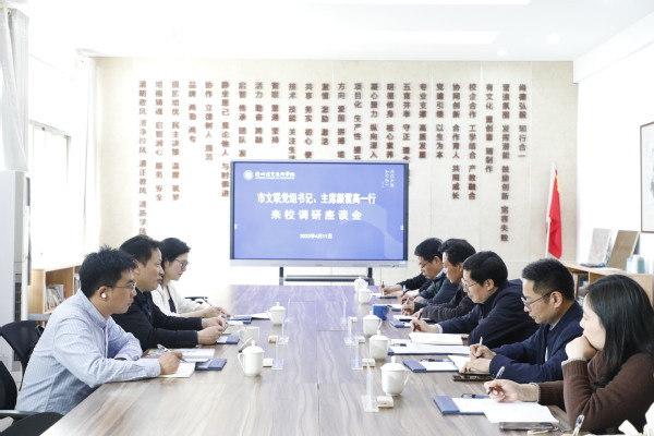 4月11日,市文联党组书记、主席颜雪高,副主席戴郑娇一行到校调研,校党委书记徐须实陪同。