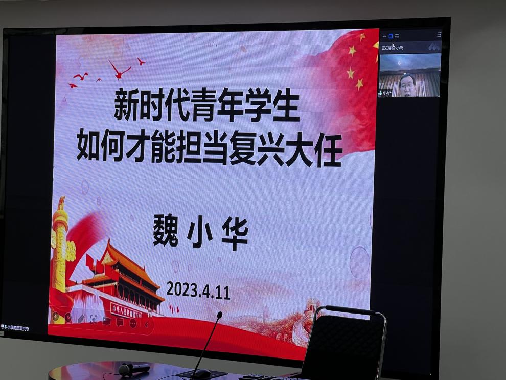 机电工程学院院长魏小华结合党的二十大精神讲述了新时代青年学生如何才能担当复兴大任。他讲到,当代中国大学生要以党的二十大胜利召开为契机,立足新时代新征程,以青春之我、奋斗之我,争做堪当民族复兴重任的时代新人,为全面建设社会主义现代化国家贡献出青春力量。