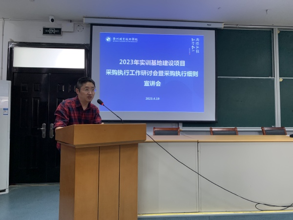 采购科徐友洪老师介绍了我校2023年实训基地建设项目的总体情况,重点阐述了采购执行过程中采购文件编制、合同签订、合同履约责任等注意事项。