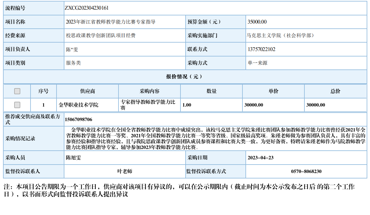 开元网页版2023年浙江省教师教学能力比赛专家指导自行采购信息公示