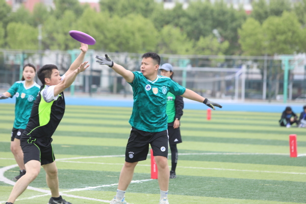 伴随着活力、热情、激烈的音乐,我校12位辅导员踏着青春的步伐步入赛场,以饱满的热情投入比赛,在比赛过程中秉承“盘不落地、永不言弃”的精神,进攻配合默契,防守奋力抢断,在攻防转换间身轻如燕、反应敏捷,享受着每场比赛带来的欢悦,将飞盘的魅力展现得淋漓尽致。