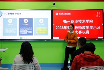 比赛分为教案、无生教学片段展示、说课三块内容。参赛教师根据抽选片段进行6分钟的无生片段教学,之后围绕课程目标、教材分析、学情分析、教学方法、教学过程、教学效果、教学创新与特色等方面进行8分钟的说课展示。