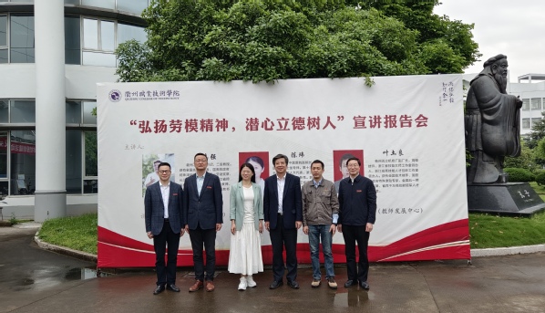 徐须实指出,潘志强、陈玮、叶土良三位劳模是我市教育、医疗、工业经济三大领域的杰出代表和优秀楷模,在衢州市经济社会发展中形成一股无形的榜样力量,不断激励着社会各界奋发向上、不断前进。他希望广大师生,一要学习劳动模范们立足岗位,坚持追求精益求精、一丝不苟的劳动精神。要认真学习三位劳模矢志不渝、任劳任怨的劳动精神,营造劳动最光荣、劳动最伟大、劳动最美丽的浓厚氛围,形成干事创业、争先创优、加快发展的良好态势。二要学习劳动模范们服务社会,坚持追求无怨无悔、不求回报的奉献精神。要认真学习三位劳模身上熠熠生辉的爱国情怀和“最美”精神,把奉献精神内化于职业教育高素质技术技能人才培养全过程,担负起“为党育人、为国育才”的责任和使命。三要将学习劳模精神转化为推进学校高质量发展的强大动力。老师们要认真学习劳模精神,立足岗位实际,与学校高质量发展同向同行、同频共振。同学们要苦练本领、学好技术、增长才干,坚定走“匠心筑梦、技能成才 ”之路。