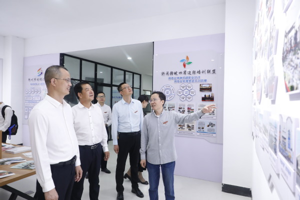 会前,与会领导、专家参观了学校共富学院展示厅、数字校园中枢、工业互联网实训中心、医学院大健康公共实训中心,详细了解我校高水平专业群建设、实训基地建设、服务地方发展等情况。