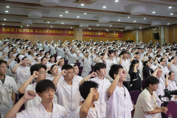 徐须实希望,同学们要不断涵养医者仁心。要弘扬生命至上,举国同心,舍生忘死,尊重科学的抗疫精神,坚守敬畏生命,救死扶伤,甘于奉献,大爱无疆的职业精神,心怀敬畏之心,锤炼高尚品格,不断涵养医者仁心。要始终练就“新医科”过硬本领。新一轮科技革命正在深刻影响着护理实践,极大地拓展和延伸了护理学的内涵和边界,同学们要主动融入“新医科”建设战略,超前设变、积极应变、主动求变,做护理技术的创新者和传承者。要传播传承健康文化。同学们不仅要发挥专业技术优势,积极开展护理实践,还要大力践行并传播防病胜于治病等健康科学理念和文化,凝聚社会建设健康中国的共识,从点滴开始做健康文化的践行者和传播者。
