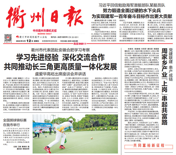 《衢州日报》2023年5月12日头版 报道 记者 江峰 黄紫依 通讯员 欧阳洪萍