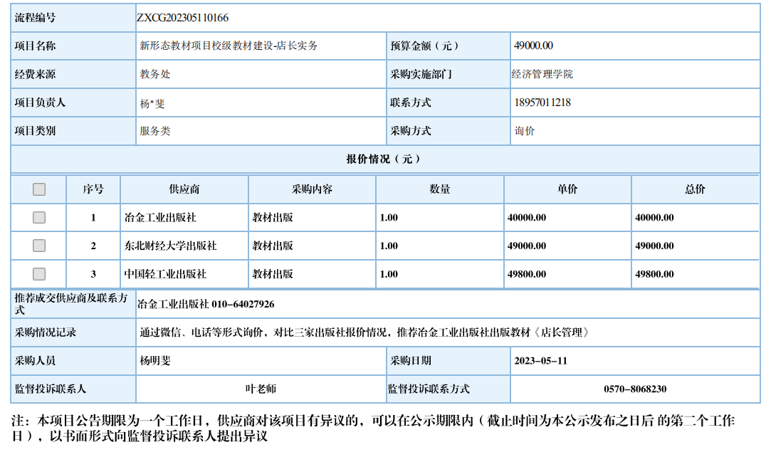 开元网页版新形态教材项目校级教材建设-店长实务自行采购信息公示