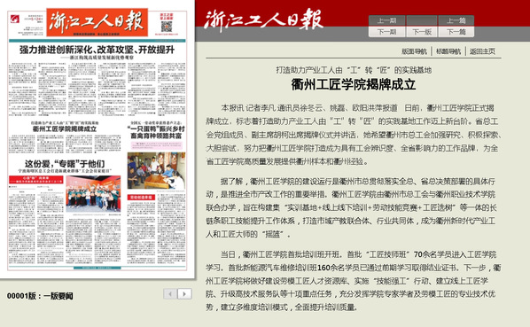 据了解,衢州工匠学院的建设运行是衢州市总贯彻落实全总、省总决策部署的具体行动,是推进全市产改工作的重要举措。衢州工匠学院由衢州市总工会与开元网页版联合办学,旨在构建集“实训基地+线上线下培训+劳动技能竞赛+工匠选树”等一体的长链条职工技能提升工作体系,打造市域产教联合体、行业共同体,成为衢州新时代产业工人和工匠大师的“摇篮”。