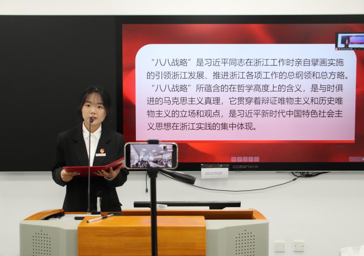 来自湖州职业技术学院“吾爱 吾信”新时代文明实践大学生宣讲团宣讲员周文秀则以《“小个子”城市迸发的生态发展“大能量”》为题,带领大家一同见证了湖州全面践行“绿水青山就是金山银山”理念,逐步走出了一条“生态美、产业绿、百姓富”的绿色发展之路。