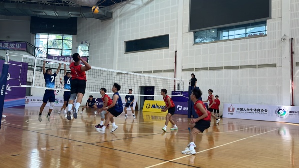 1/4决赛,对阵A组第一海南政法职业技术学院。队员们敢打敢拼,但由于缺乏后力,在每局领先的情况下仍被翻盘,最终遗憾输掉比赛。