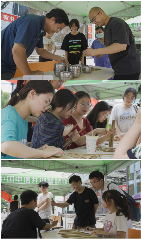 据悉,此次活动所使用的筷子全部是食堂淘汰下来的筷子。一位食堂管理人员表示,“学校食堂每学期更换旧筷子,以往淘汰下来的筷子都当生活垃圾直接处理,此次活动通过小游戏、摆造型,赋予了筷子第二次生命,既让筷子物尽其用,也寓教于乐,让师生在游戏中增强了绿色环保理念,也促进了师生间的沟通交流,非常有意义”。