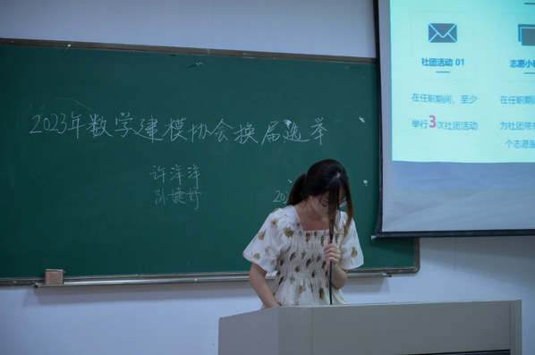 为进一步推进数学建模创新协会的发展,根据校团委社团管理中心安排,在公共教学部的指导下,建模协会于2023年6月7日完成2022-2023学年换届选举工作。根据社团管理中心相关要求,本次选举采取竞选人线下竞选演讲的方式进行。
