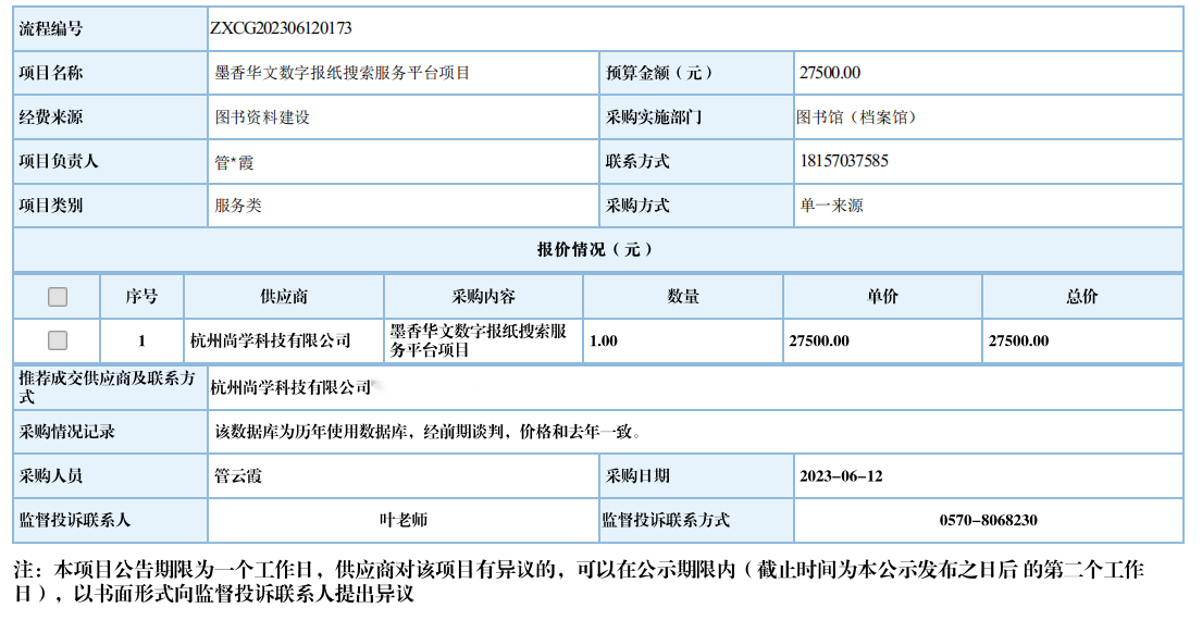 开元网页版墨香华文数字报纸搜索服务平台项目自行采购信息公示