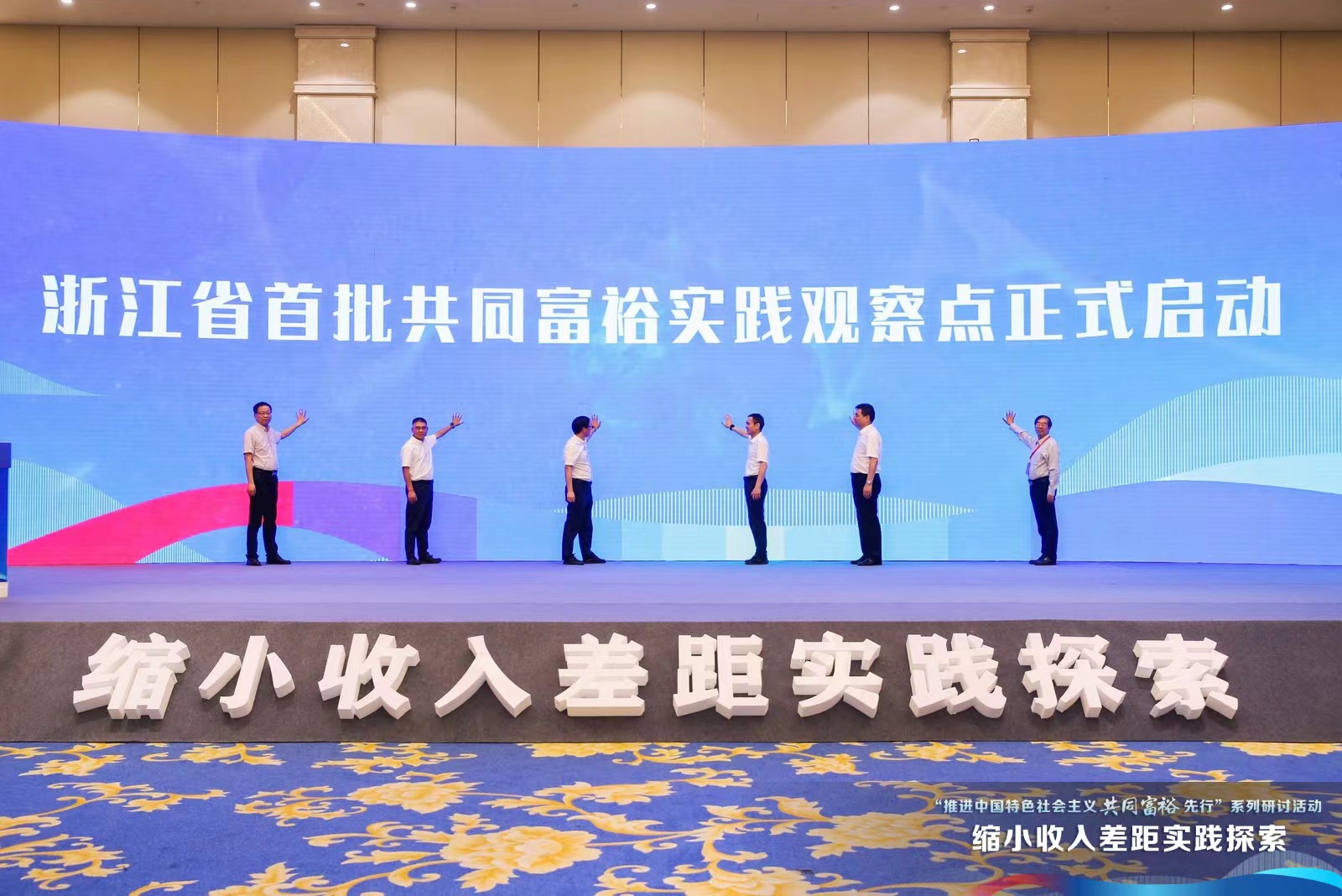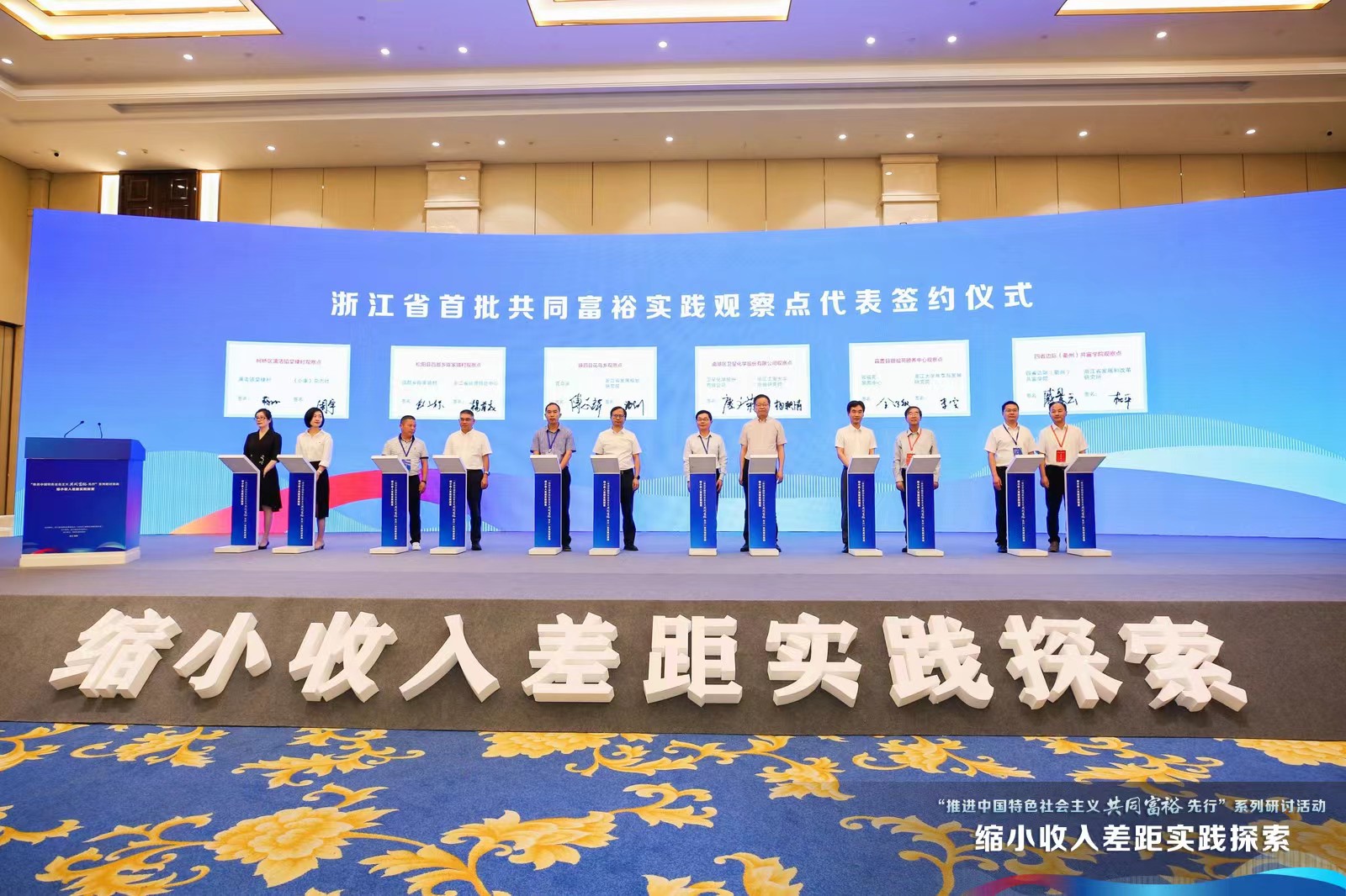 为贯彻落实习近平总书记关于共同富裕重要指示精神,积极推动共同富裕地方实践创新,全面探索可复制可推广的共同富裕新模式、新路径,“推进中国特色社会主义共同富裕先行”系列活动于6月15日在绍兴市举行。活动举行了全省首批60个共同富裕实践观察点启动发布和签约仪式。共富学院入选首批观察点,并代表公共服务机构与智库单位浙江省发展和改革研究所签约。