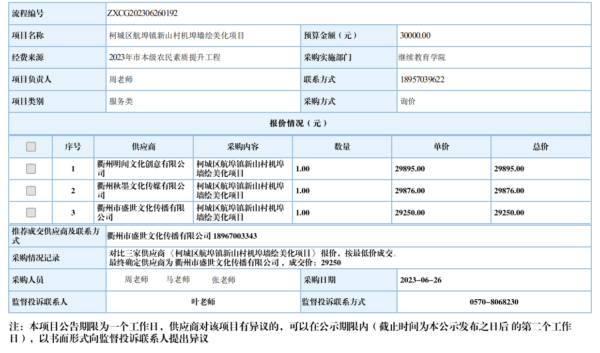 开元网页版柯城区航埠镇新山村机埠墙绘美化项目自行采购信息公示