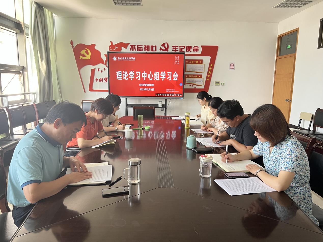 7月2日上午,经济管理学院党总支召开理论学习中心组学习会,中心组全体成员参加,邀请校党委委员、副校长徐浪静巡听,学习会由党总支书记斯彬彬主持。