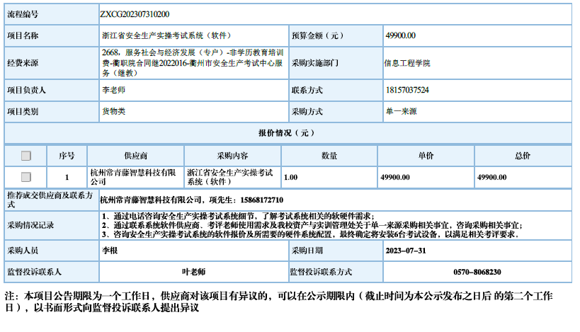 开元网页版浙江省安全生产实操考试系统(软件)自行采购信息公示