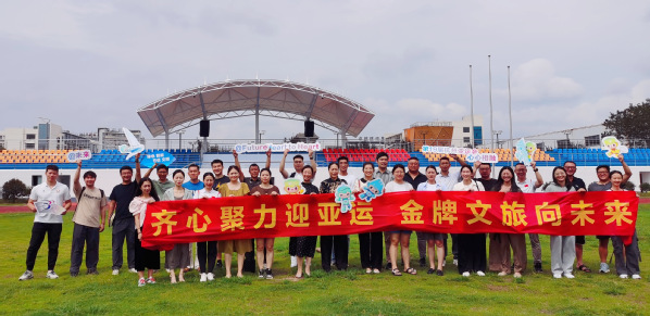 会后,全体教职工集体“打卡”学校改造后的体育场馆,为亚运加油。
