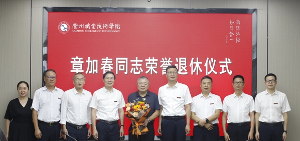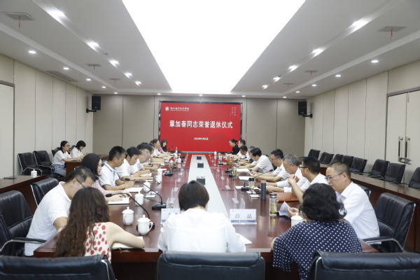 9月8日上午,我校原纪委书记章加春同志光荣退休仪式在行政楼四楼举行,校党委书记徐须实,党委副书记、校长吕延文,党委委员、纪委书记方焕云,党委委员、副校长余建军、姚水洪,党委委员、宣传部部长孔庆红,党委委员、组织部部长周帅参加,党委副书记何百通主持。
