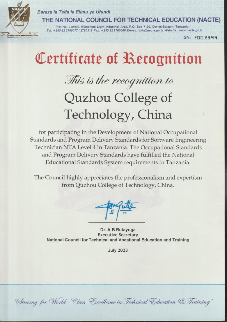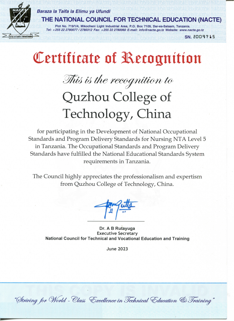 近日,我校参与制定开发的坦桑尼亚护理员5级、软件工程技术员4级国家职业标准,通过坦桑尼亚国家职业教育委员会审核,获得认证,正式纳入坦桑尼亚国家职业教育体系。