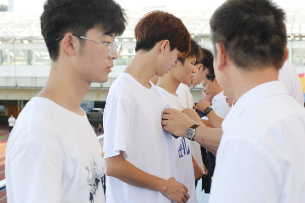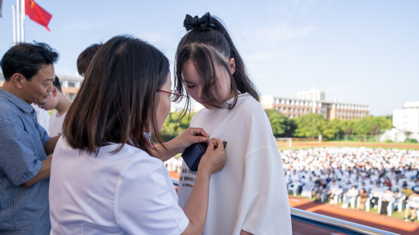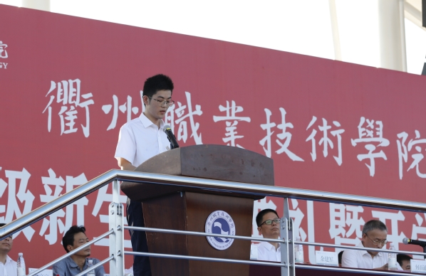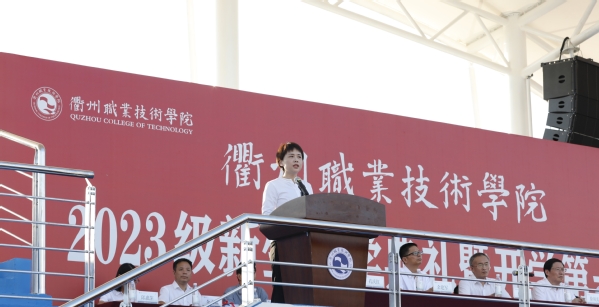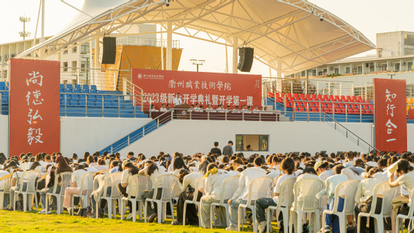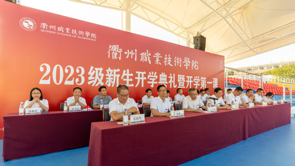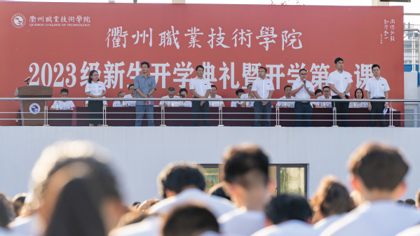 各二级学院院长们为新生代表授予校徽,全体新生庄重地为自己佩戴上了充满意义的大学校徽。这枚校徽,不仅代表着“衢职人”的身份,更承载着衢职人的使命与荣光。同学们将牢记校训“尚德弘毅、知行合一”,以高尚的道德立身,以坚毅的品格承载历史重任,用奋斗践行青春誓言,不负时代,不负韶华,不负学校和家长的殷切期望。