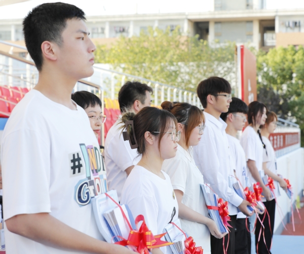 三年后我们将会成长什么样子?当初的目标是否达成?心中的梦想是否实现?……各二级学院书记为学生代表发放《致三年后的自己》的一封信材料,新生们在美丽的信纸上写下心愿,写下目标,写下期许……