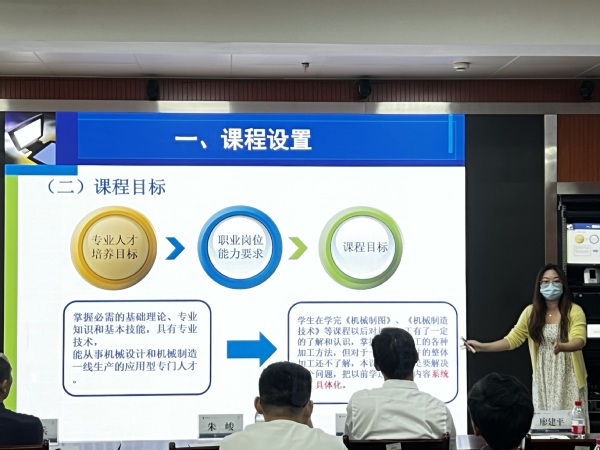 校内专业教师汪文娟、张庆枭、张雪钊、赵英杰、黄刘田等分别对《机械加工工艺与夹具》、《先进制造工艺在汽车中应用》、《汽车电子控制技术》、《工业机器人应用技术》、《传感器与检测技术》等课程进行了说课和试讲。各位专家对新教师的说课和试讲进行了点评,并提出了改进和提高的方向,最后要求新教师要设计好课程教学,快速适应高职教学规律,站稳讲台。