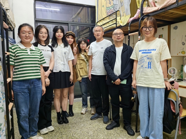 9月24日晚,校党委副书记何百通走访了“3221”联系寝室,艺术设计学院党总支书记许金友等陪同走访。