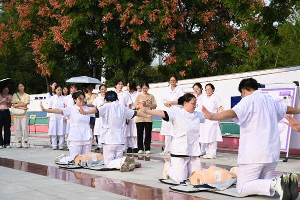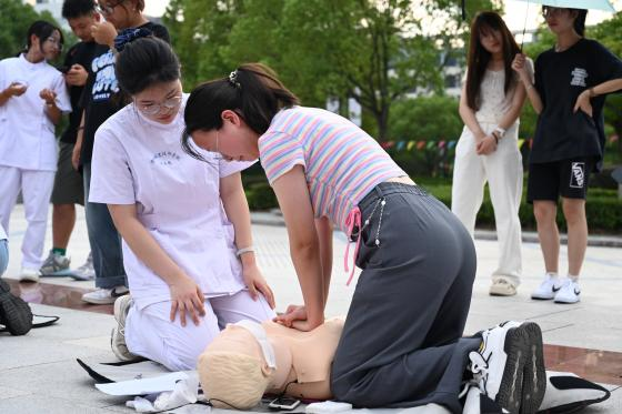 近日,我校通过开展“‘医’起迎亚运·‘救’在你身边”——世界急救日主题宣传系列活动,进一步宣传普及应急救护知识,增强我校师生自救互救能力。工作人员以生动、直观的模拟操作为师生们现场演示了急救全过程,并讲解了心肺复苏、海姆立克急救法等急救技能及注意事项,帮助大家掌握基本自救互救技能和要领。