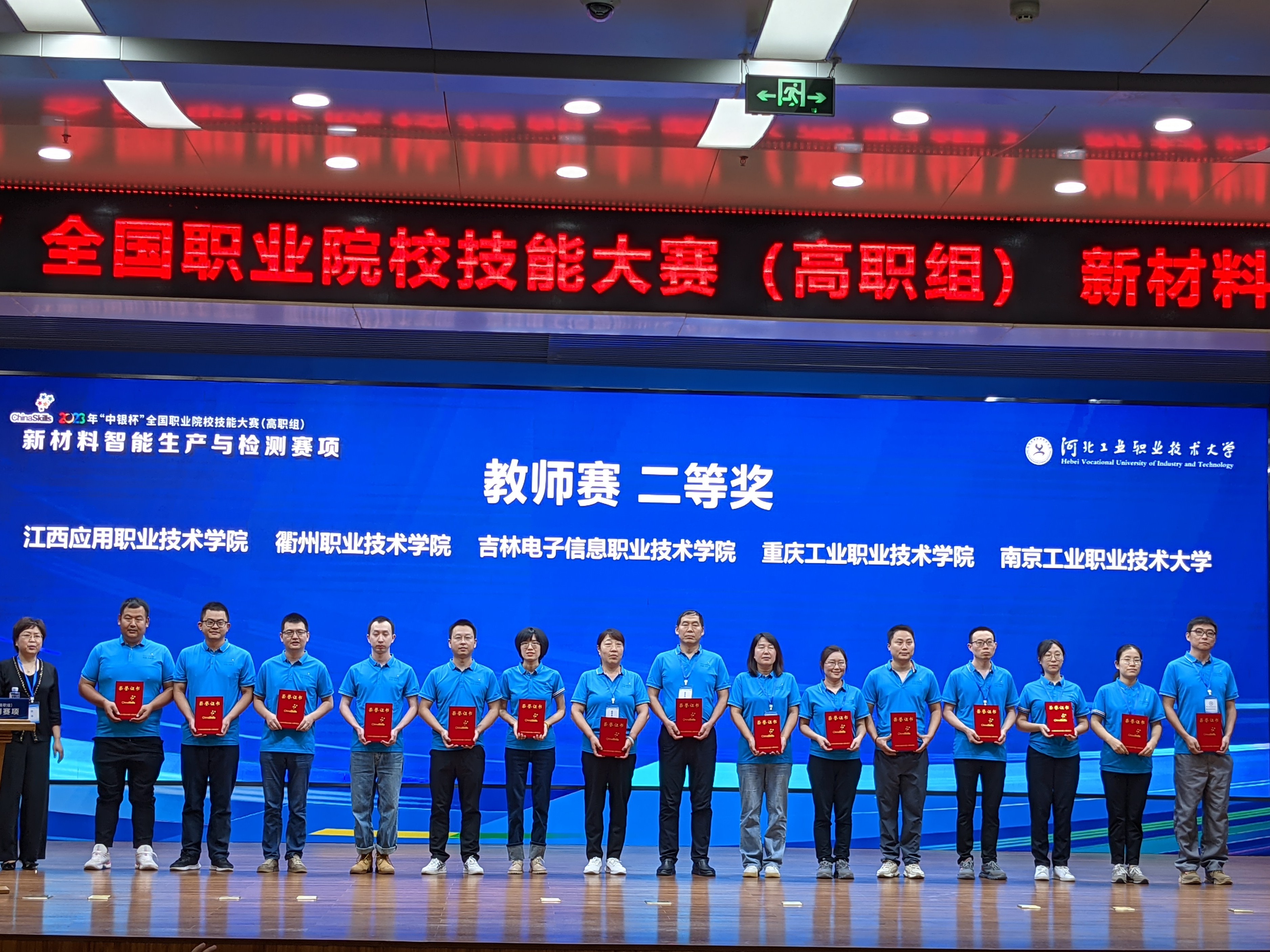 9月22日—25日,全国职业院校技能大赛(高职组)“新材料智能生产与检测”赛项在河北工业职业技术大学成功举办。我校教师团队邵思程、林钰珍、舒慧建在该赛项中荣获二等奖,同时,由机电工程学院邵思程、朱峻老师指导的学生团队丁伟良、金天、吴剑也荣获学生组二等奖。