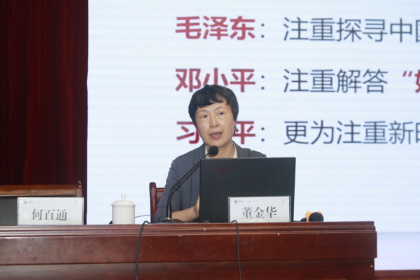 为全面、系统、深入学习习近平新时代中国特色社会主义思想,深学细悟习近平新时代中国特色社会主义思想的科学体系、核心要义和实践要求,10月18日,学校“知行大讲堂”举办学习贯彻习近平新时代中国特色社会主义思想专题讲座,特邀省委党校哲学教研部教授、哲学博士、硕士生导师董金华作专题报告。校党委书记徐须实,党委委员、纪委书记方焕云,党委委员、副校长余建军、姚水洪,党委委员、宣传部长孔庆红,党委委员、组织部长周帅,学校中层以上干部、师生党员代表现场聆听讲座。党委副书记何百通主持。