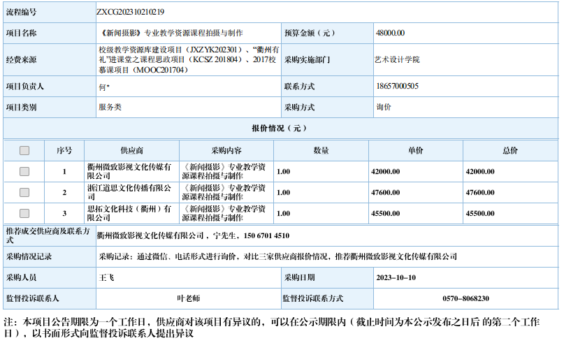 开元网页版《新闻摄影》专业教学资源课程拍摄与制作自行采购信息公示