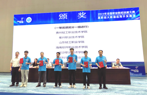 10月23日,2023年全国职业院校技能大赛(高职组)大数据应用开发赛项成功举办。我校信息工程学院教师王张夫、学生朱凯杰、江明晓和王乾组成的队伍(师生同赛、不设指导老师)喜获全国一等奖,实现了学校在全国职业院校技能大赛全国一等奖零的突破。
