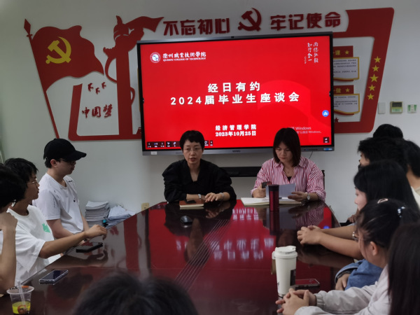 为了更好地倾听毕业生心声,充分了解2024届毕业生学习、生活、实习落实情况,不断提升人才培养质量。10月25日中午,经济管理学院在729会议室召开了2024届毕业生座谈会,院党总支书记斯彬彬、副院长覃龙飞、党总支副书记蒋雪芬及2024届毕业生代表们齐聚一堂,共话学习生活的感悟收获,畅谈实习就业现状及未来发展规划。