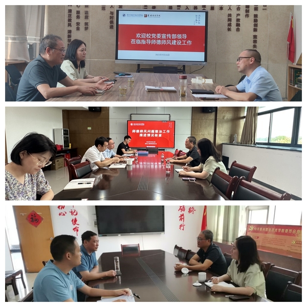 9月26日,校党委委员、宣传部(统战部、教师工作部)部长、师德师风建设领导小组办公室主任孔庆红带队到机电工程学院、艺术设计学院和马克思主义学院开展师德师风问题整治工作专项检查。