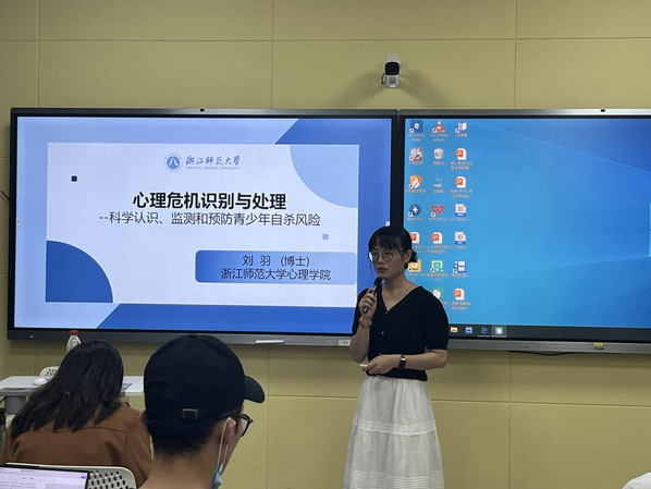 会上,刘羽博士以心理危机的发展史作为导入,阐述了什么是学校心理危机干预,强调如何科学认识心理危机干预,全方面角度去关爱我们的学生。