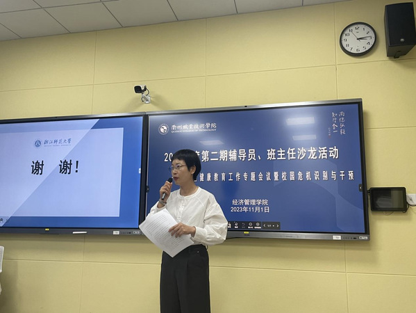 为增强我院心理健康教育工作的针对性和实效性,完善学生心理危机预防和干预机制,提高辅导员、班主任对学生心理危机的识别与应对能力,进一步推进我院学生心理健康教育工作的规划范开展。经济管理学院于11月1日在316举办第二期辅导员、班主任沙龙暨心理健康教育工作专题会。此次会议特邀请到浙江师范大学刘羽博士来校开展讲座。经济管理学院书记斯彬彬、副书记蒋雪芬、学工办全体辅导员、全体班主任参加会议,会议由蒋雪芬主持。