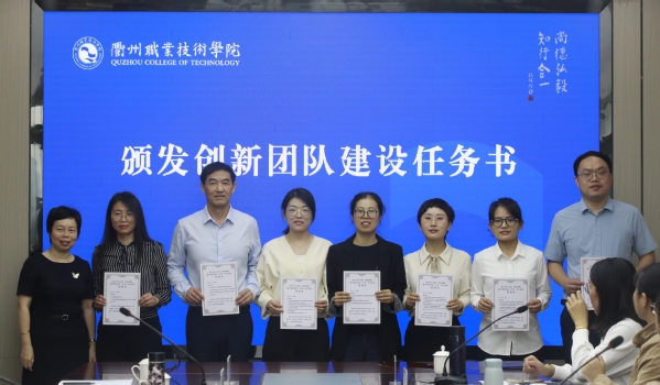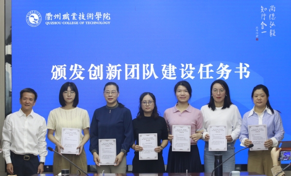 胡野、赵雪红为甘椿椿等19位团队教师颁发浙江省护理专业中高职一体化教师教学创新团队项目建设任务书。