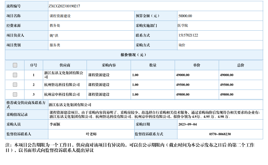 开元网页版课程资源建设自行采购信息公示