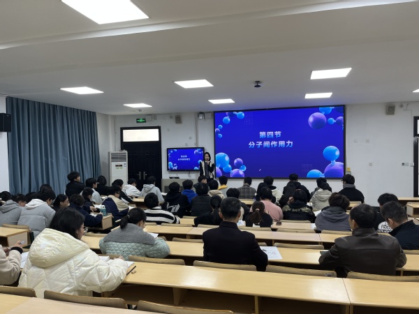 本次公开课由邵雅婷老师主讲,授课内容为《无机化学》课程的分子结构与晶体结构。课后姚水洪充分肯定了本次授课效果,并与学院各青年教师深入交流,从课件设计、师生互动、授课节奏、经验技巧等方面提出建议,勉励青年教师积极学习交流,提升授课能力。