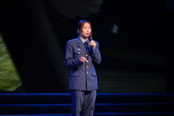国旗护卫队团支书张晴带来宣讲《点燃青春三色光不负时代赴远方》。告别红妆,保家卫国,参军入伍守家园。褪去迷彩,救死扶伤,一袭白衣护健康。收起燕尾,助老惠民,不负时代赴远方。在后浪奔涌中奋楫扬帆的我们,正点燃青春的色彩,勇立潮头,乘风破浪!勇立潮头,乘风破浪!